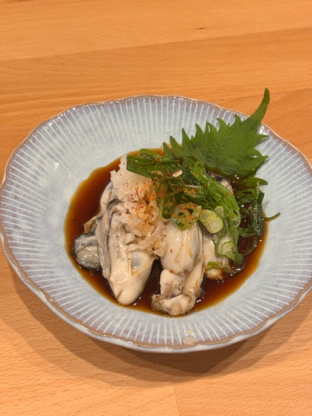 【牡蠣しゃぶポン酢】…サッと湯通しした牡蠣に大根おろしとネギを乗せ、ポン酢で味付け‼️濃厚でクリーミ...