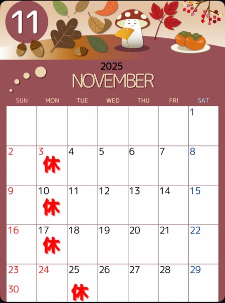 【11月定休日のお知らせ📢】3、10、17、25日お休み致します。よろしくお願い致します🙇「...