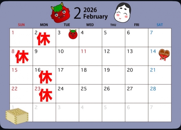 2月の店休日